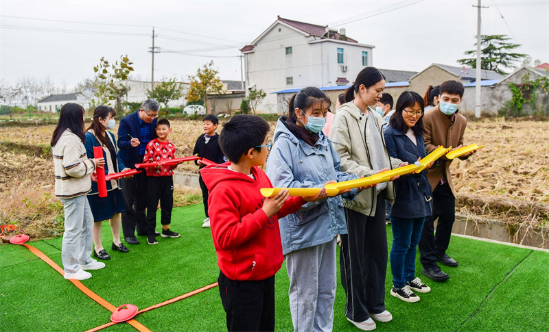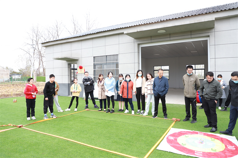 慰问结束后,集团机关支部、青年村工作人员和孩子们一起进行了趣味竞赛活动,包括珠行万里、袋鼠跳、摸石过河、投掷沙袋四个项目。大家配合无间、其乐融融,有的当裁判员,有的当记录员,还有人参与其中,趣味竞赛搞得有声有色。比赛结束后,集团领导给各项目获得前两名的孩子们颁发了奖状和奖品,并进行了合影留念。