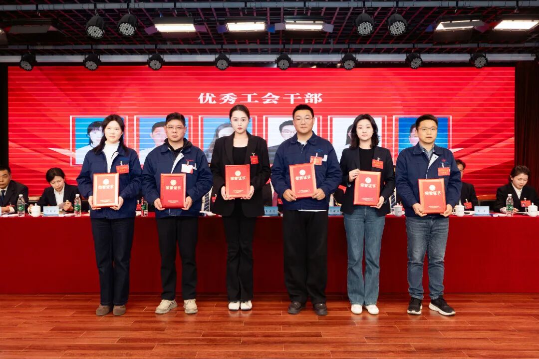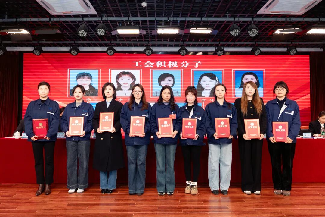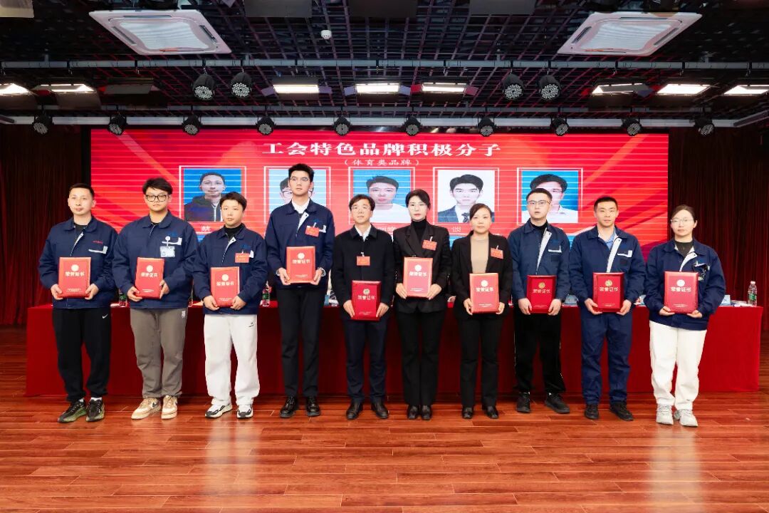 巅峰国际股份党委副书记、董事长钱振华宣读了《关于表彰2025年度优秀分会、优秀工会干部、工会积极分子和工会特色品牌积极分子的决定》,主席团成员为6个优秀分会颁发了荣誉牌,为12名优秀工会干部、36名工会积极分子以及21名工会特色品牌积极分子颁发了荣誉证书。