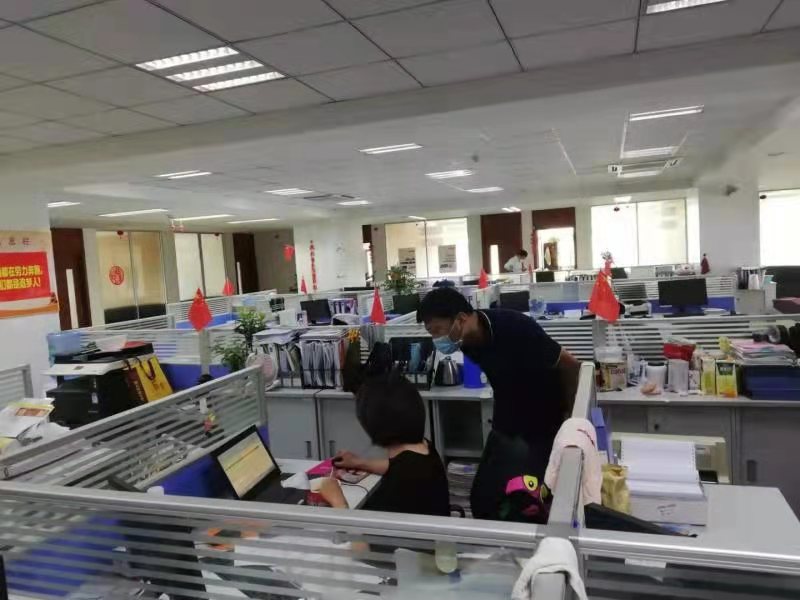 看!供应链中心,邵树权同志牵头,全员行动、远程办公。采购员们分别联系货源进扬车辆的报备,储备物资的联系......互不见面却干得有条不紊,热火朝天!