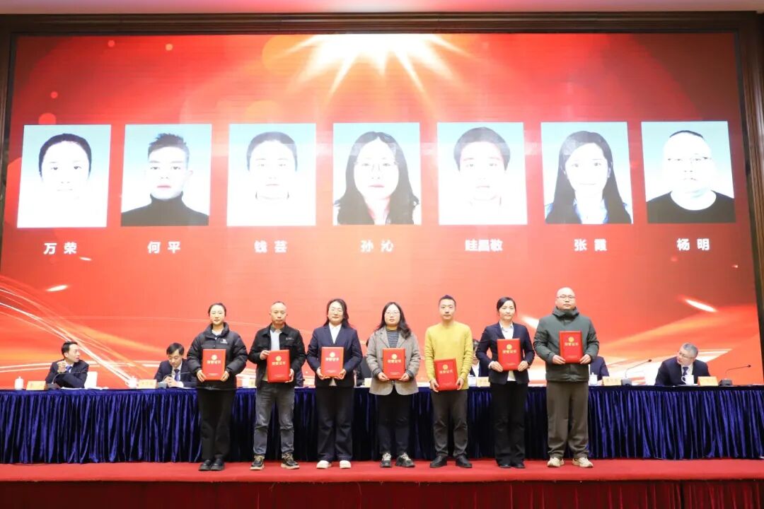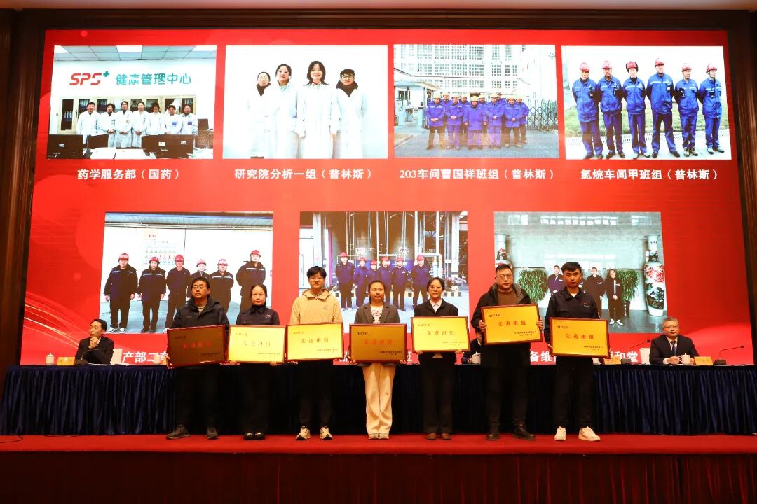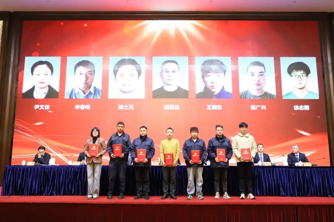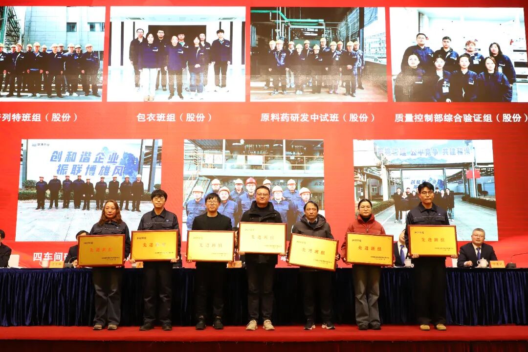 巅峰国际集团财务总监遇宝昌宣读了《关于表彰2025年度巅峰国际集团先进集体和先进个人的决定》,大会对11家先进单位、24个先进班组和84名先进个人进行了表彰。联博药业、联通医药设备获得高质量发展先进单位;巅峰国际股份、普林斯医药、睿源生物获得科技创新先进单位;巅峰国际股份、联博药业、联通医药设备获得安全生产先进单位;巅峰国际股份、普林斯医药、圣氏化学获得项目建设先进单位。