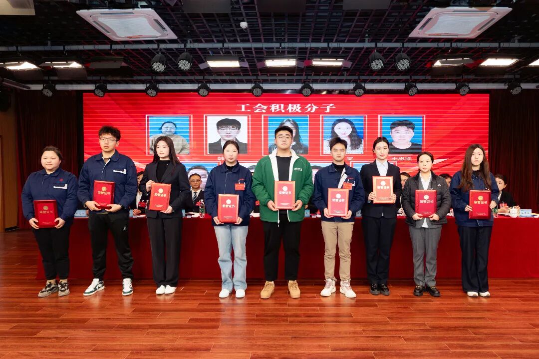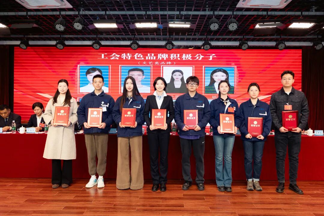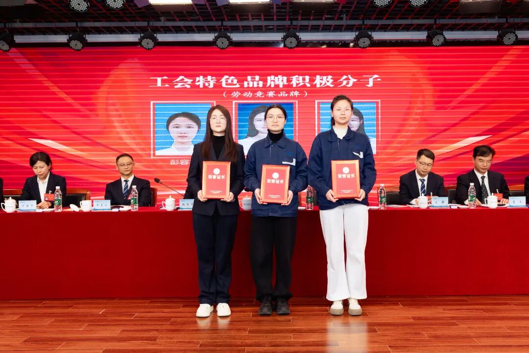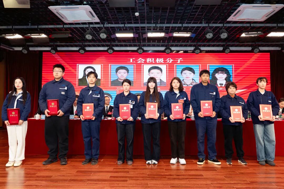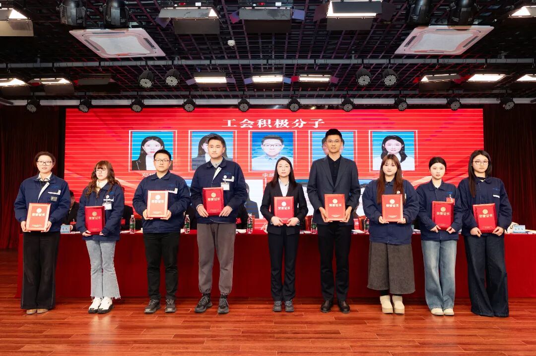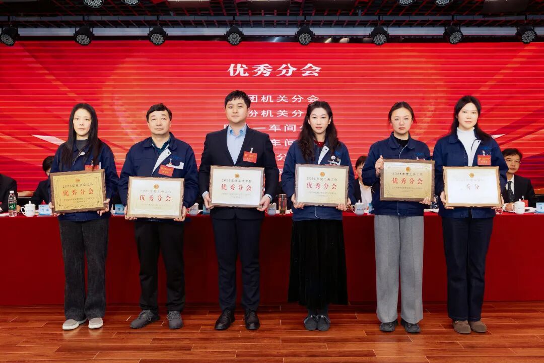巅峰国际股份党委副书记、董事长钱振华宣读了《关于表彰2025年度优秀分会、优秀工会干部、工会积极分子和工会特色品牌积极分子的决定》,主席团成员为6个优秀分会颁发了荣誉牌,为12名优秀工会干部、36名工会积极分子以及21名工会特色品牌积极分子颁发了荣誉证书。